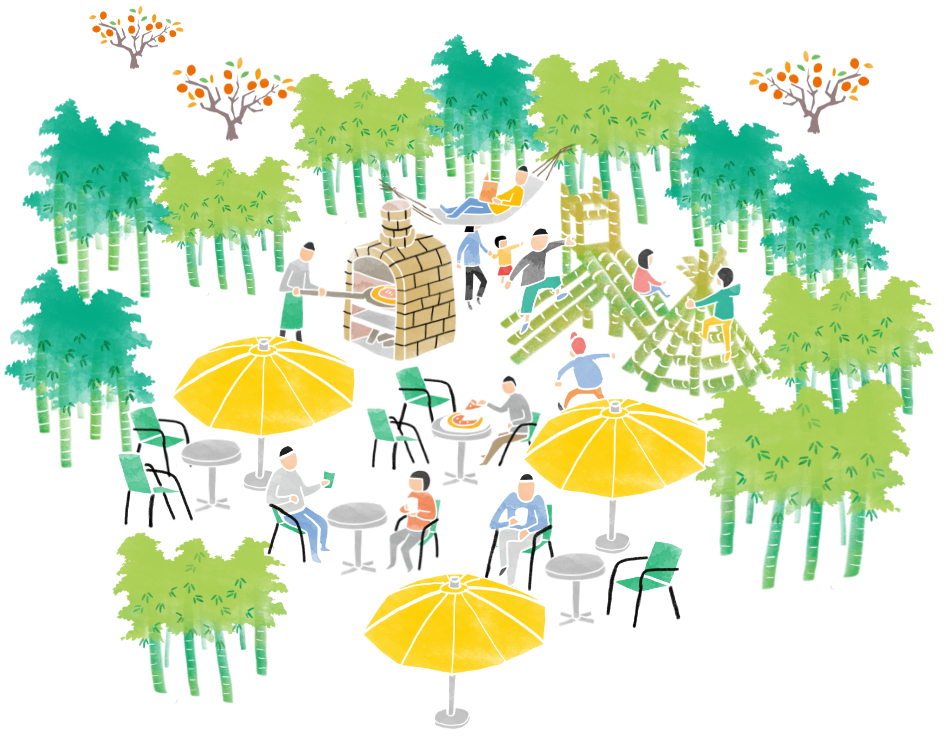 生産者さんの声やシェフの夢をきき、竹林という空間でひとつにつながるレストラン。決まったカタチではなく大人だけの時間も、子供と楽しむイベントも開催したりと、いろんな空想が広がります。